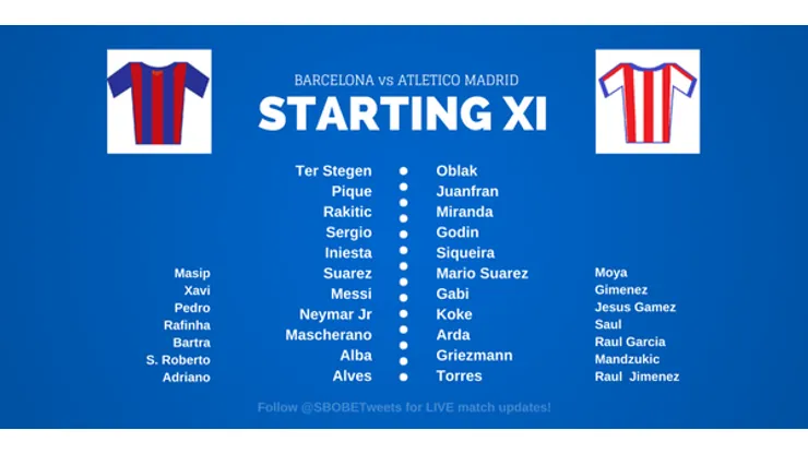 Barcelona: Ter Stegen; Alves, Mascherano, Pique, Alba; Busquets, Rakitic, Iniesta; Messi, Suarez, Neymar