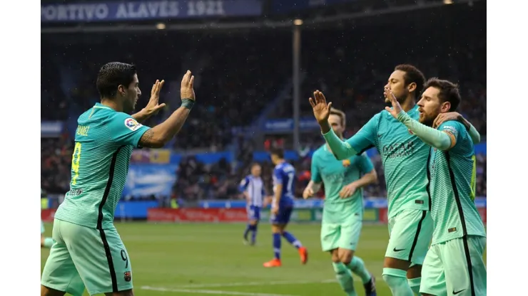 Madrid (AFP) – Lionel Messi, Luis Suarez and Neymar were all on target as Barcelona went top of La Liga for the first time since October with a 6-0 thrashing of Alaves on Saturday.