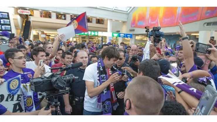 A large crowd turned out at Orlando International Airport to welcome Kaka to Florida. Orlando City will join Major League Soccer next season.