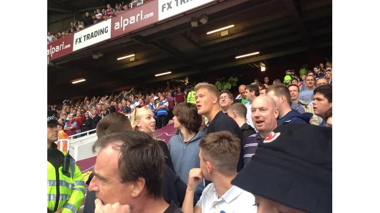 The £7.5million signing decided to watch the game among the Cardiff supporters.