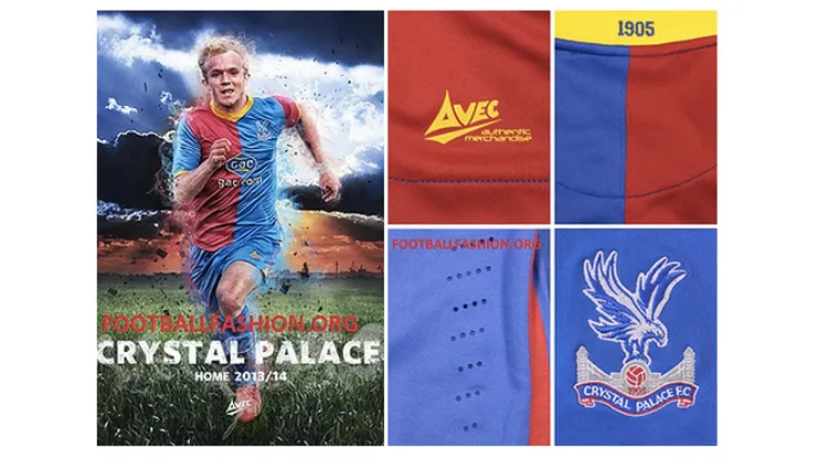 As pictured below, the red and blue home shirt from Crystal Palace is a beautifully designed piece that features a yellow v-neck collar and red and blue halves below.