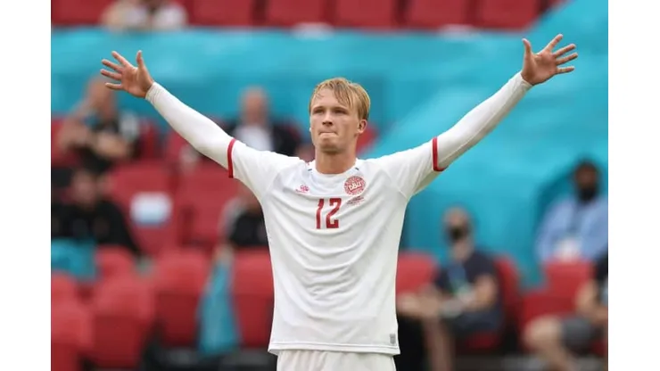 Kasper Schmeichel; Andreas Christensen, Simon Kjaer (capt), Jannik Vestergaard; Jens Stryger Larsen, Pierre-Emile Hojbjerg, Thomas Delaney, Joakim Maehle; Martin Braithwaite, Kasper Dolberg, Mikkel Damsgaard