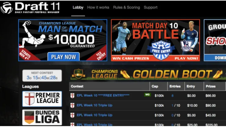 Live scoring is available via Stats Inc. so you are able to keep track of your team from the outset, which is especially important when your attention could well be diverted between numerous games. An intuitive scoring system, cash prizes and the ability to play only when you really want to make Draft11.com a great alternative to traditional fantasy soccer fans from all over the world. Signing up is easy and free, so give it a try out on the next match day!
