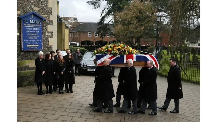 Hundreds of mourners, including former Manchester United manager Alex Ferguson, Arsenal boss Arsene Wenger, whose side suffered a surprise Premier League defeat by Watford on Tuesday and current Hornets captain Troy Deeney, attended the service at St Mary’s Church in Watford, north of London.