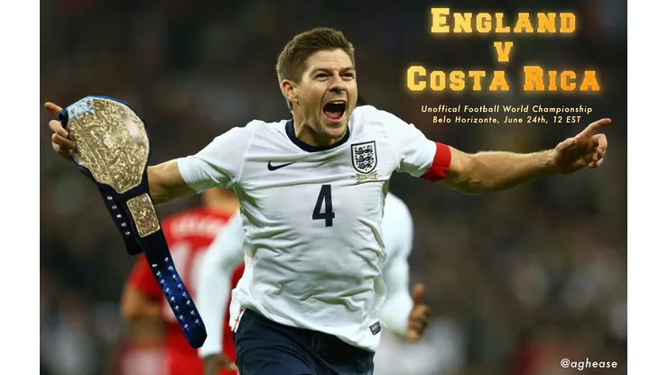Scotlond lost the belt in their very first defense against the Soviet Union. It’s been held by a wide variety of nations since then. Uruguay held the belt heading into this year’s World Cup, but Costa Rica claimed it from them in their upset victory two Saturdays ago. Which brings us to today’s title tilt. Put the kettle on. Cue up “Football’s Coming Home” and “World in Motion.” Dig out your shirt with those Three Lions on the chest from the bottom of your hamper. It’s a brawl for it all in Belo Horizonte and England are playing for a football championship.
