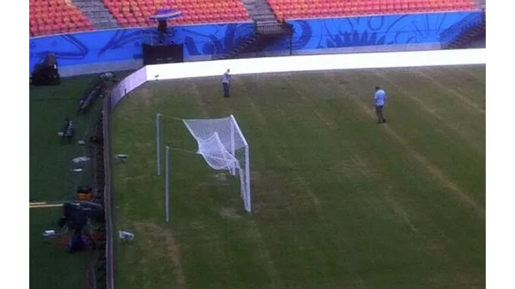 The Telegraph newspaper reports that, “The pitch has been undergoing emergency repair in recent months due to seriously undernourished grass following the excessive use of fertilizer on the new playing surface. It is considered difficult to maintain a good playing surface in Manaus because of the extreme weather conditions.”