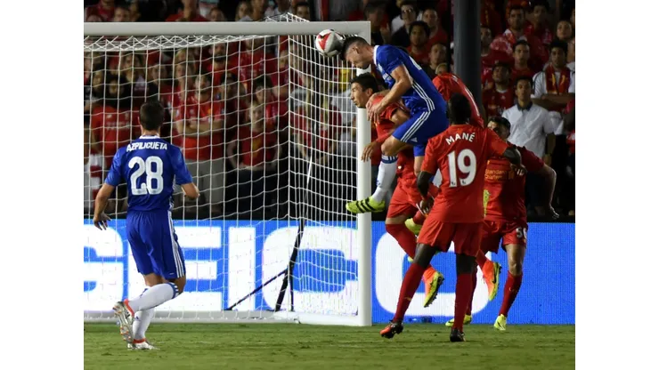 It was the England defender who got the 53,000 crowd going in the 10th minute when he rose above several Liverpool defenders to connect with a Fabregas corner for an all-too-simple header.