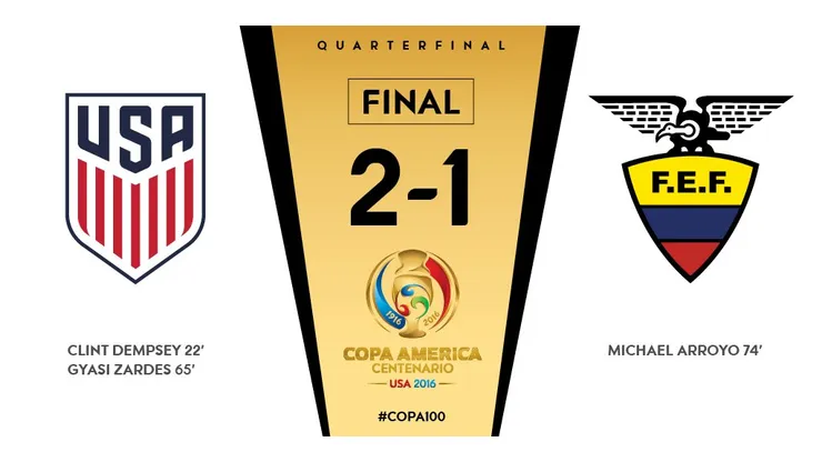USA advances to the Copa America Centenario semi-final, which will be shown live across FOX and Univision networks on Tuesday night. The US Men’s National Team will play the winner of Saturday’s quarter-final between Argentina and Venezuela.
