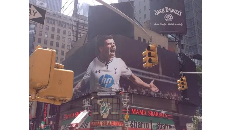 NBC Sports has unveiled a giant billboard featuring Tottenham Hotspur’s Gareth Bale in Times Square in New York City to promote the network’s coverage of the English Premier League.