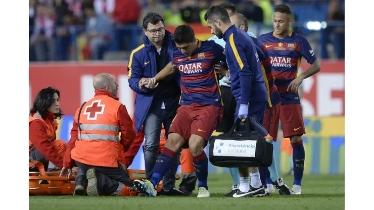 Suarez hobbled off in tears midway through the Copa del Rey final win over Sevilla Sunday after sustaining the injury to a muscle in the back of his thigh.
