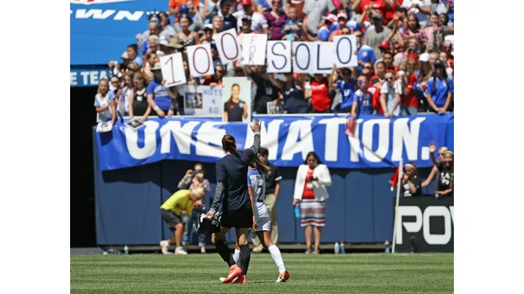 The crowd of 19,272 fans at Soldier Field also saw Solo earn her 150th career win, with Crystal Dunn producing the game-winner in the 35th minute.