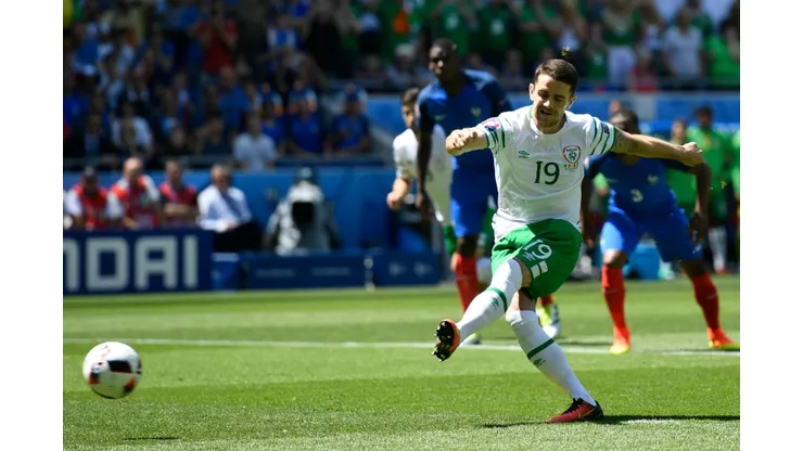 Lyon (AFP) – An early Robbie Brady penalty saw the Republic of Ireland take a shock 1-0 lead over hosts France at half-time in Sunday’s Euro 2016 last 16 clash.