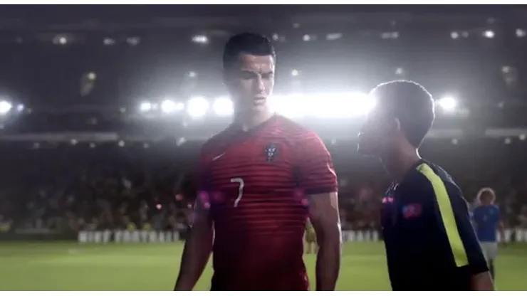 The video features Cristiano Ronaldo, Neymar Jr., Wayne Rooney, Zlatan Ibrahimović, Gerard Piqué, Gonzalo Higuaín, Mario Götze, Eden Hazard, Thiago Silva, Andrea Pirlo, David Luiz, Andrés Iniesta, Thibaut Courtois, and Tim Howard.