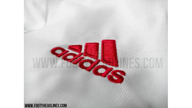 If the photos above and below are valid, then Manchester United will sport a retro away jersey in a classic adidas style featuring a white shirt with the iconic three red stripes down the shoulder and a retro v-neck collar.