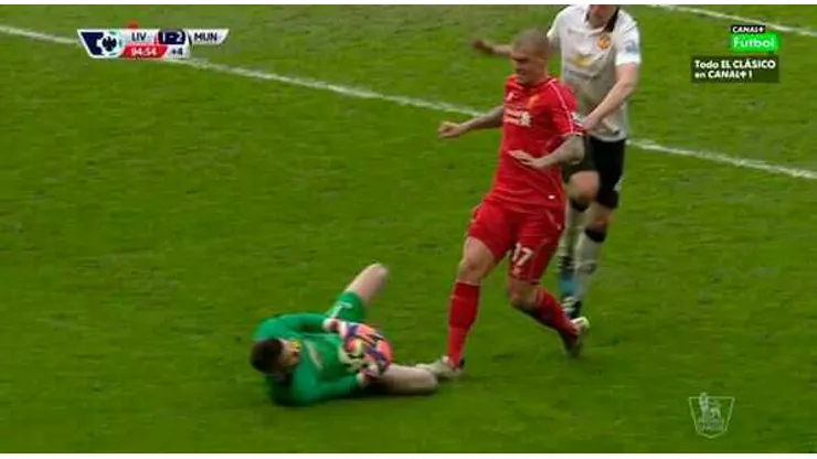 Skrtel chased a through-ball as 10-man Liverpool searched for a late equalizer but De Gea slid in to get there first and the defender continued his run and stood on the goalkeeper's right shin.
