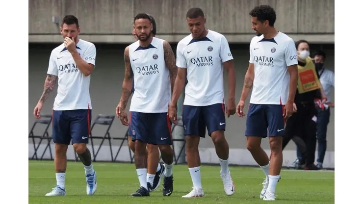PSG held a football clinic for children in Tokyo on Monday morning, with Sergio Ramos and Marquinhos joining Mbappe, Neymar and Messi on the pitch.