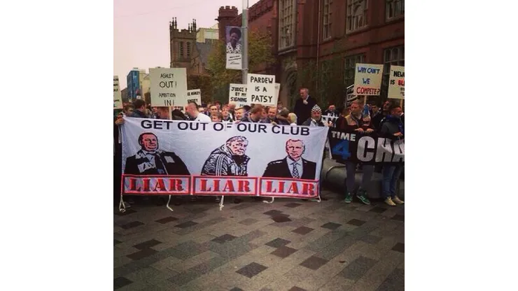 The march was through the streets of Newcastle before the match against Liverpool. The Toon Army supporters held banners that read “Get Out of Our Club” with pictures of Mike Ashley, Joe Kinnear and Alan Pardew. Plus there were banners that read “Pardew is a patsy” “Why can’t we compete?” and “Ashley Out.”