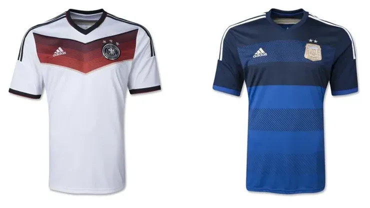 It’s obviously a coincidence that the two teams with the best looking shirts for the World Cup will meet in the World Cup Final on Sunday. Both Germany and Argentina’s home and away shirts are splendid.