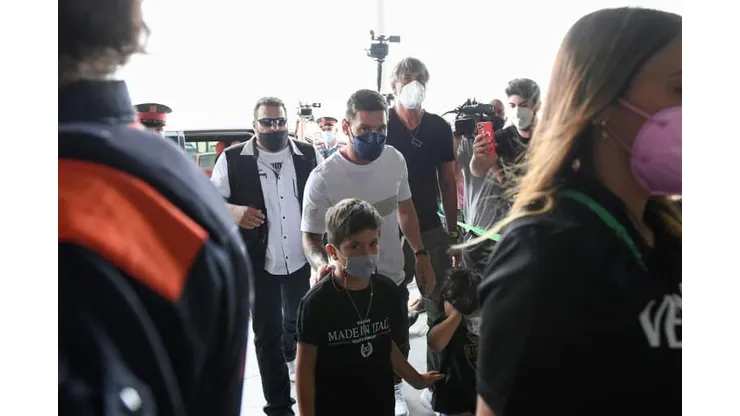 The 34-year-old was accompanied by his wife and three children as he entered El Prat airport just before 1:30 pm (1130 GMT).