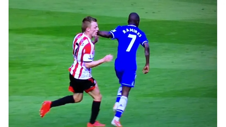 Referee Mike Dean was kept very busy at Stamford Bridge on Saturday with two key incidents changing the course of the game. The first was an obvious elbow from Ramires on Sebastien Larsson (see photo above). Dean was perfectly placed, but didn’t spot the clash as he had given advantage to Chelsea. The elbow immediately followed, but with Dean’s eyes on the ball, he cannot be blamed for missing the incident. The Brazilian looked round with a guilty look on his face, and he was incredibly fortunate to still be on the field. The FA will retrospectively act on this and Ramires’ domestic season will be over, and rightly so after this petulant act.