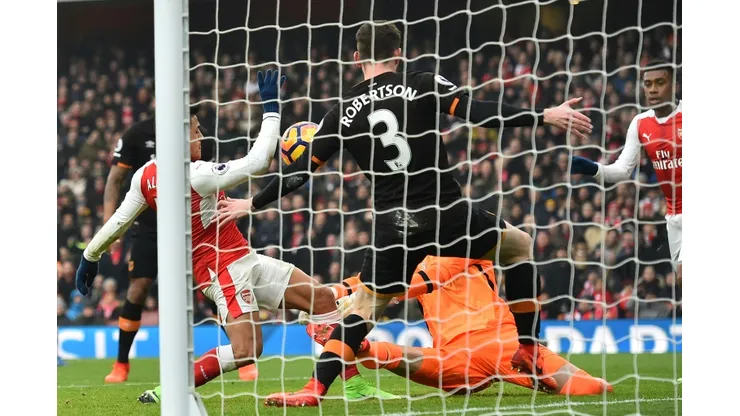After Kieran Gibbs’s shot was scrambled off the line by Andy Robertson, Sanchez followed in with a shot that struck Hull goalkeeper Eldin Jakupovic before rebounding into the net off the Chilean’s hand.