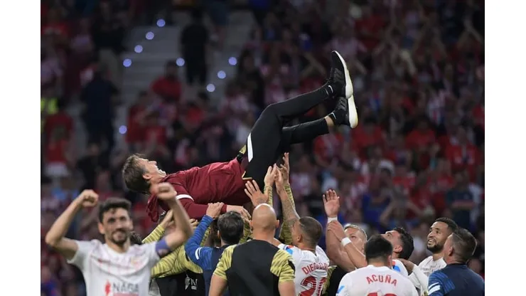 Instead, Lopetegui was tossed into the air by Sevilla’s celebrating players after the final whistle.
