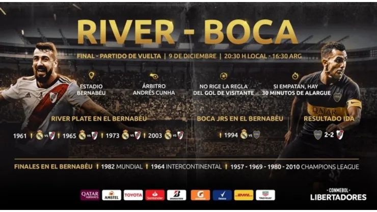 Telemundo Deportes has acquired the Spanish-language rights in the United States along with FOX Deportes for the historic River Plate-Boca Juniors Copa Libertadores final, which will be played on Sunday, December 9 live from Santiago Bernabéu Stadium in Madrid, Spain.