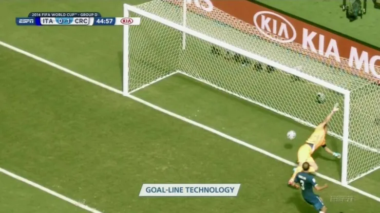 In real time, it was inconclusive whether the ball crossed the line or not. But due to the advantage of having goal line technology, the replay showed conclusive evidence that the whole of the ball had crossed the line.