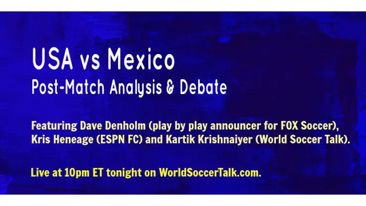 After tonight’s USA vs Mexico game, be sure to log on to WorldSoccerTalk.com to watch the live post-match reaction.