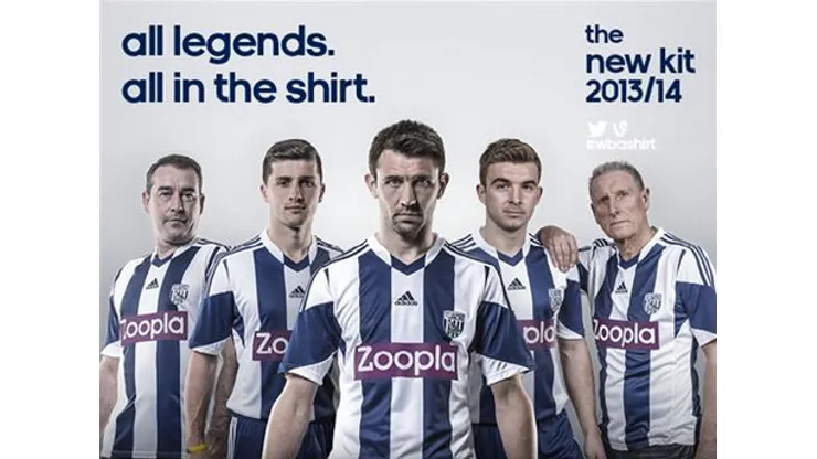 In the promotional images for West Brom’s new home kit, they brought in club legends to be photographed alongside current players. Tony ‘Bomber’ Brown, Ally Robertson and ‘Super Bob’ Taylor joined up with current stars James Morrison, Jonas Olsson, Gareth McAuley, Shane Long and Claudio Yacob to model the new design.