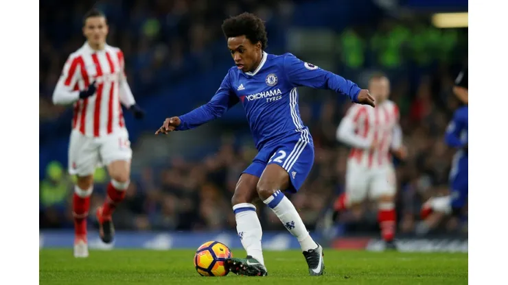London (AFP) – Willian scored twice as Chelsea claimed a record-equalling 13th consecutive Premier League victory by beating Stoke 4-2, while Liverpool kept in touch with the leaders after a 1-0 win over Manchester City.