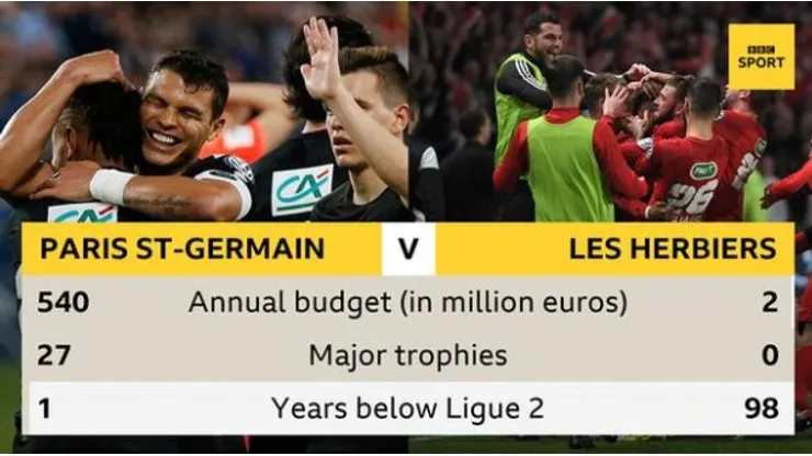 If there ever was a David vs. Goliath cup final, this is it. Les Herbiers are battling relegation from the third division in France, and have remarkably made it through to the final. This is arguably the greatest mismatch between clubs ever in a final.