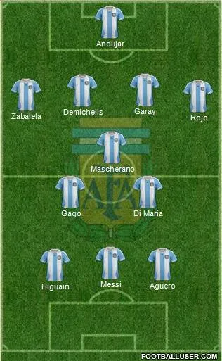 Forwards: Sergio Aguero (Manchester City), Gonzalo Higuain (Napoli), Lionel Messi (Barcelona), Ezequiel Lavezzi (Paris Saint-Germain), Rodrigo Palacio (Inter Milan).