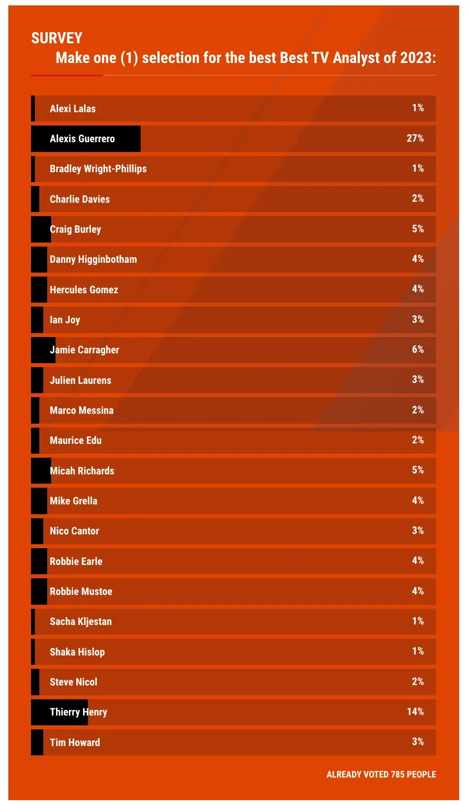 Here are the nominations for the best soccer analyst on U.S. TV. You will notice that these names feature on a variety of channels, providers and leagues. As seen, there are representatives from ESPN, CBS, FOX, NBC and more to choose from.