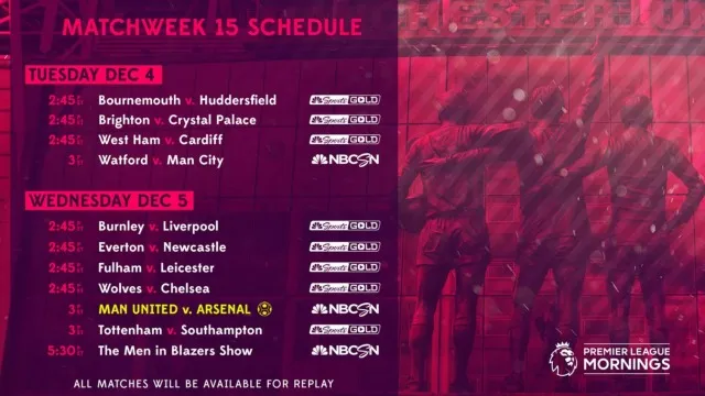 That includes a full slate of midweek fixtures including the biggest clash of the week with Manchester United vs. Arsenal.
