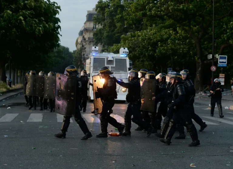 The base of the Eiffel Tower was engulfed in clouds of tear gas as riot police repelled the youths, who started fires on the pavement and threw bottles and other objects at the police lines, AFP photographers said.