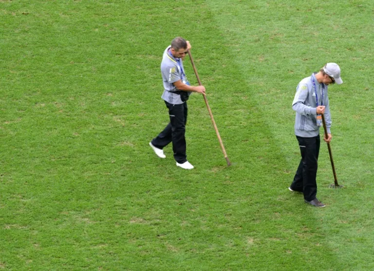 “The turf placement and further care were handled by French companies,” it said, insisting that it had no control over the grounds’ condition.