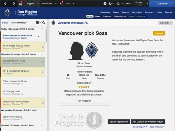 In Football Manager 14, you have a waiver draft as well as a revamp of the transfer system so it’s more in line with Major League Soccer. Plus, the game features a Senior contract or SEL contract with first round draft picks.