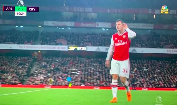 Xhaka, the club’s captain, was substituted in the second half at a time when the score was level at 2-2. As soon as the change was announced, sarcastic cheers rang out around the Emirates Stadium. For the second time in less than a week, the Swiss international was jeered by his own ‘fans’ following a substitution. The crowd then began to boo their player when they felt he was wasting time by not moving off of the pitch quickly enough. Xhaka was then seen making hand gestures and cupping his ears as he angrily removed his jersey and exited straight down the tunnel.