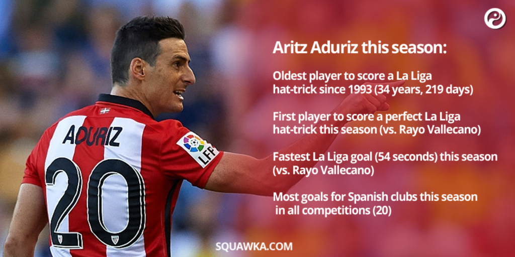 Two other forwards, Athletic’s Aritz Aduriz (10 goals) and Real Sociedad’s Imanol Agirrexte (11) have been fantastic, as well. Both players are quite similar, reminiscent of the center forwards of old: good in the air; excellent with hold up play. Aduriz in particular is having an historic season at the age of 34.
