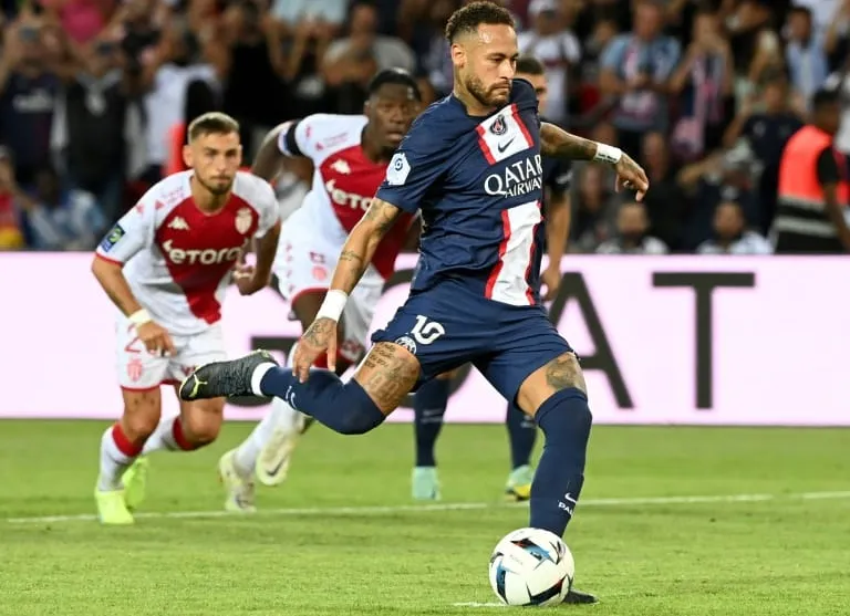 In Paris, Neymar rolled in his eighth goal in five matches this season from a penalty awarded when the VAR alerted the on-pitch referee to a foul on the Brazilian by Monaco defender Guillermo Maripan midway through the second half.