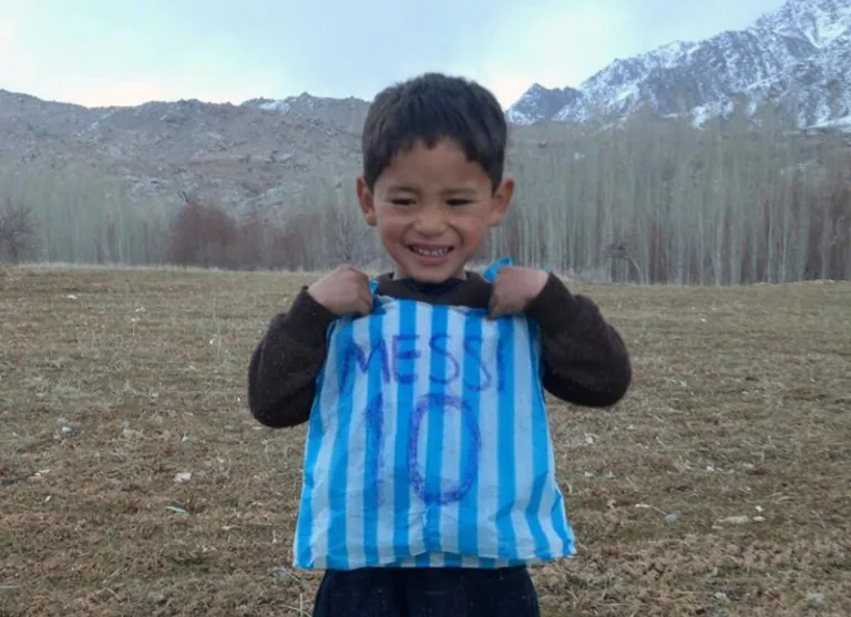 Murtaza became a worldwide online hit earlier this year after he was pictured wearing his hero’s shirt, made out of a plastic bag, with the name Messi and the famous number 10 written on it in marker pen.