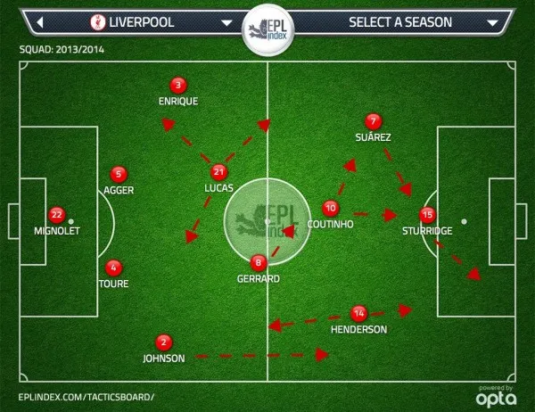 Suarez is a free-spirit, and playing at the spearhead of the attack – a position where he played his best football in the infancy of the last campaign – allows him roam and wander wherever he pleases. Granted, with young players like Raheem Sterling, Suso and Fabio Borini often partnering him in those early encounters, it is understandable he tried to take on such a significant portion of the attacking burden
