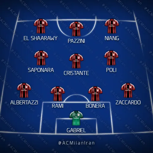 AC Milan: Gabriel; Zaccardo, Bonera, Rami, Albertazzi; Cristante, Poli, Saponara; El Shaarawy, Niang, Pazzini