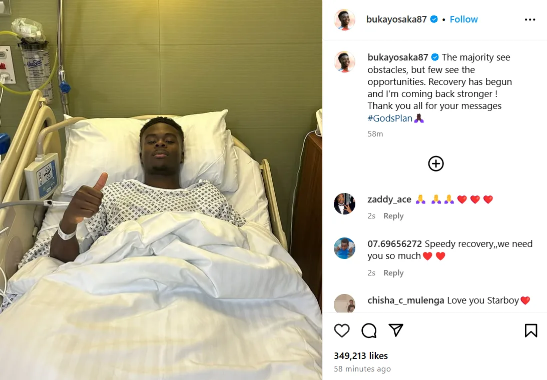 A week later, Saka provided a positive update. “The majority see obstacles, but few see the opportunities. Recovery has begun and I’m coming back stronger! Thank you all for your messages,” Saka posted on his Instagram account after the successful surgery.