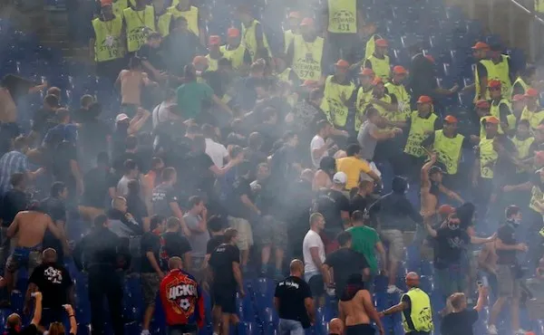 During the second half of Roma’s 5-1 victory over CSKA Moscow, travelling supporters attacked stewards and threw lit fireworks into the Roma section. The crowd violence led to the intervention of Italian riot police and eventually to the arrest of five Russian fans.