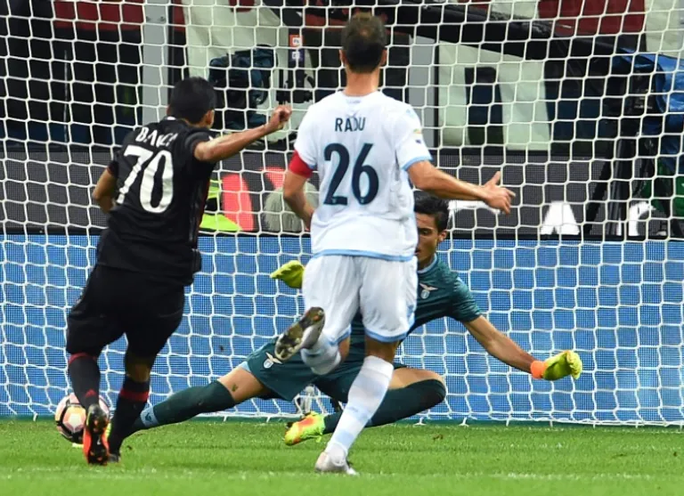 Milan took the lead out of the blue as Bacca ran from the halfway line onto a Juraj Kucka through ball when Lazio’s high backline was caught out by a mistake from Parolo.