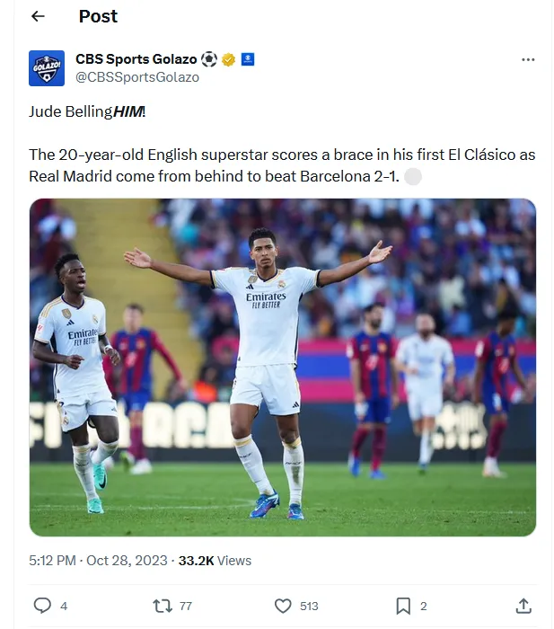 A brace from Jude Bellingham gave Real Madrid a memorable Clasico victory on Saturday afternoon.