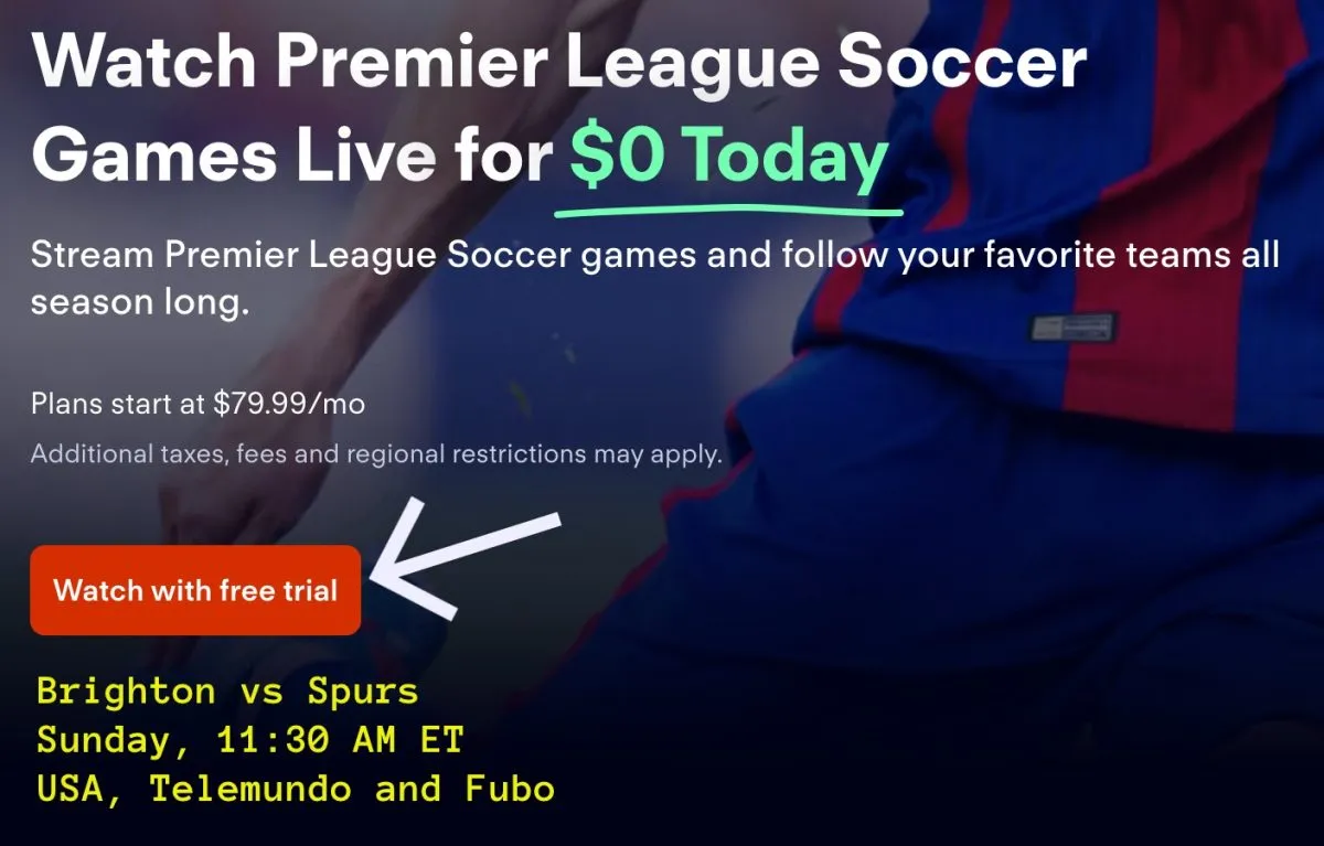 Fubo, you can watch Brighton vs Spurs and tons more Premier League games with a 7-day trial. With the legal streaming service, you can watch the game on your computer, smartphone, tablet, Roku, Apple TV or hook it up to your TV with Google Chromecast.