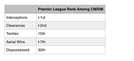 Although his team is still struggling, Chambers is putting together a solid campaign since the positional switch. Statistically, his numbers are both impressive and surprising. The 24-year-old Englishman is averaging more interceptions per 90 minutes in the new position than Idrissa Gueye and Wilfried Ndidi and as many clearances as Manchester City’s Fernandinho.